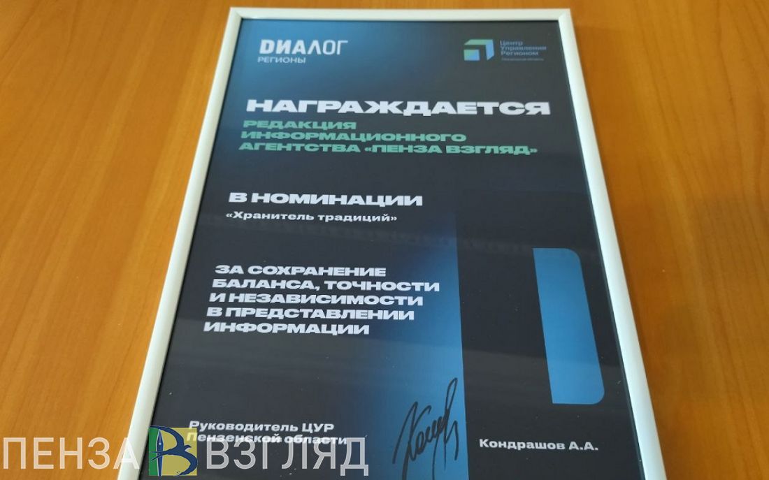 Работа редакции портала «Пенза-Взгляд» была отмечена Центром управления регионом в номинации «Хранитель традиций» - коллектив награжден за сохранение баланса, точности и независимости в представлении информации.
