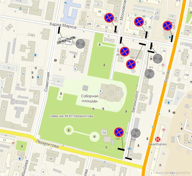 С 22 часов 12 августа до 16 часов 13 августа стоянку ограничат на участке от улицы Карла Маркса до Соборной площади; на улице Белинского - на участке от улицы Лермонтова до улицы Карла Маркса, а также на улице Карла Маркса - на участке от улицы Кирова до пересечения улиц Советской/Володарского.