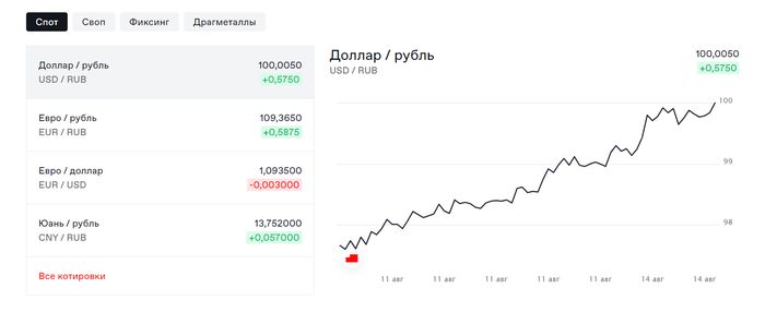 В половине десятого часа утра за единицу американской валюты давали больше 100 российских рублей. Такие показатели не фиксировались с марта 2022 года, отмечает РИА Новости.