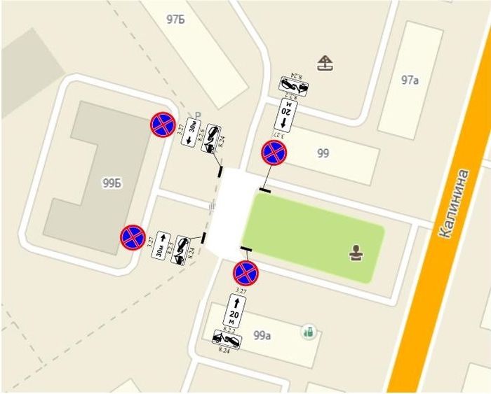 После этого водителям нельзя будет останавливать транспортные средства на территории около учебного заведения, расположенного на улице Калинина, 99Б.