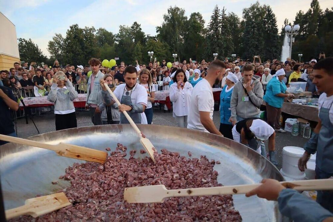 На специально изготовленной «Ленкомтехом» сковороде, диаметр которой составлял 2 метра, а объем 750 литров, было пожарено 350 килограмм картофеля, 60 килограмм индейки и 50 килограмм лука. Кроме того, в процессе готовки было также использовано 25 литров подсолнечного масла.
