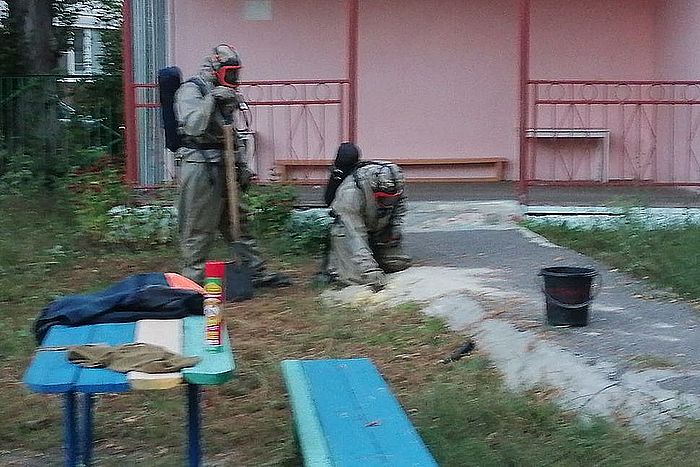 Заведующая детским садом обратилась за помощью к специалистам. Прибыв на улицу Пугачева, они надели защитные костюмы, подобрались к гнезду и ликвидировали его, обеспечив безопасность детей и воспитателей.