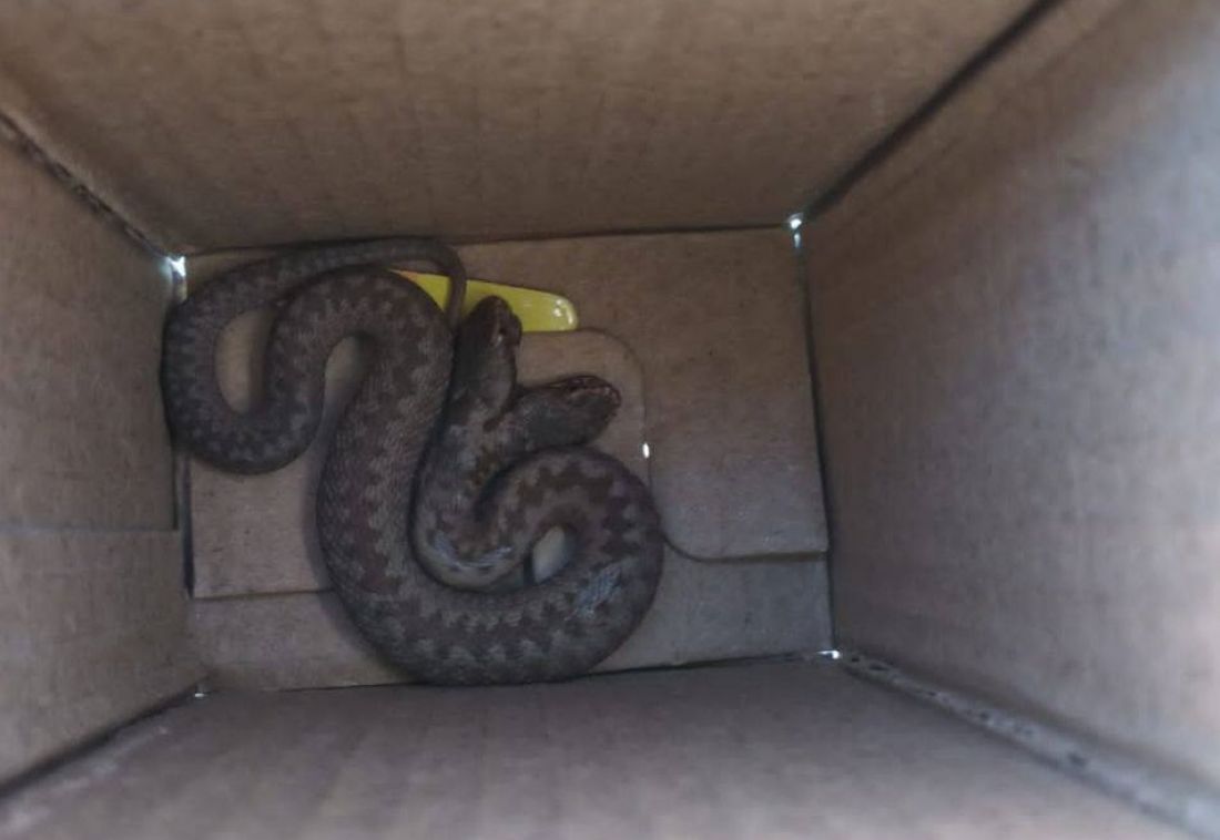 В сообществе опубликован снимок рептилии, которая лежит в коробке. Публикация собрала множество лайков и репостов.