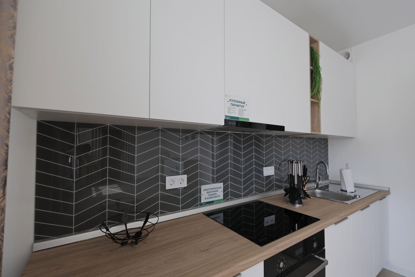 Покупатель может заселиться получив ключи - в квартире уже сделан ремонт, а застройщик установил гарнитур и бытовую технику.