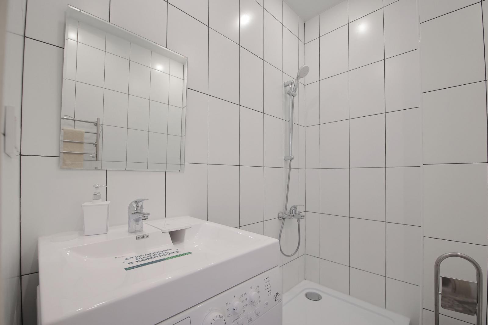 При покупке квартиры с отделкой «Всё включено» в комплекте идут кухонный гарнитур, оборудованный бесконтактной подсветкой – освещение включается благодаря датчику движения. В комплекте встроенная техника – варочная панель, духовой шкаф, посудомоечная машина (в трехкомнатной квартире). В ванной комнате уже установлена стиральная машина, сантехника и санфаянс.