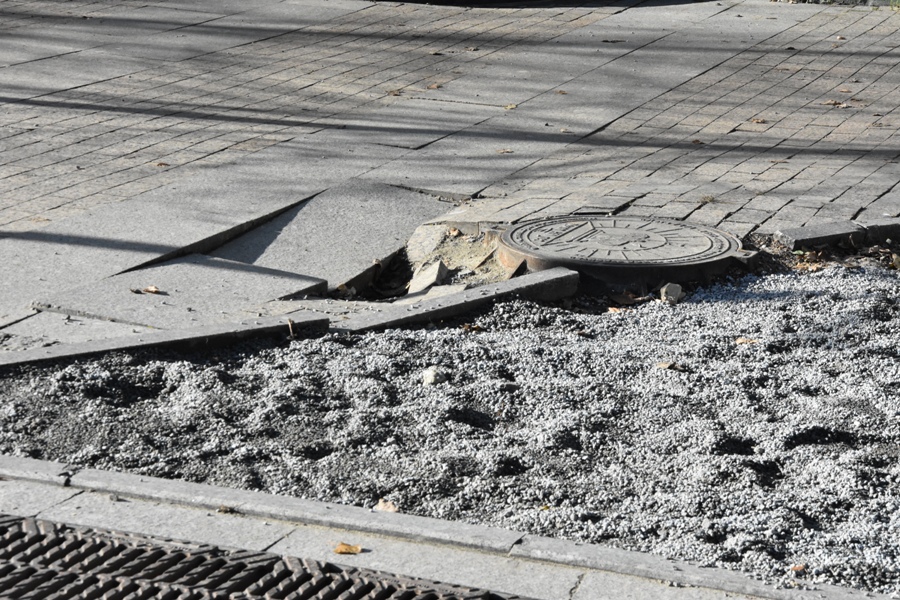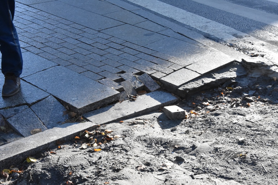 Представители Гордумы осмотрели участок от ТЦ «Высшая лига» до пересечения с улицей Бакунина. Подрядчику сделали замечания по поводу неровностей на стыках плитки, провалов, сколов, разрушенного покрытия у краев ливневки, одна из которых оказалась открытой, и вокруг крышек люков.