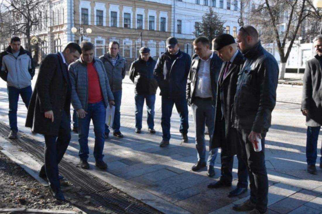 Заместитель председателя представительного органа муниципалитета Юрий Зиновьев вместе с депутатским корпусом проверил качество работ по укладке плитки на улице Московской.