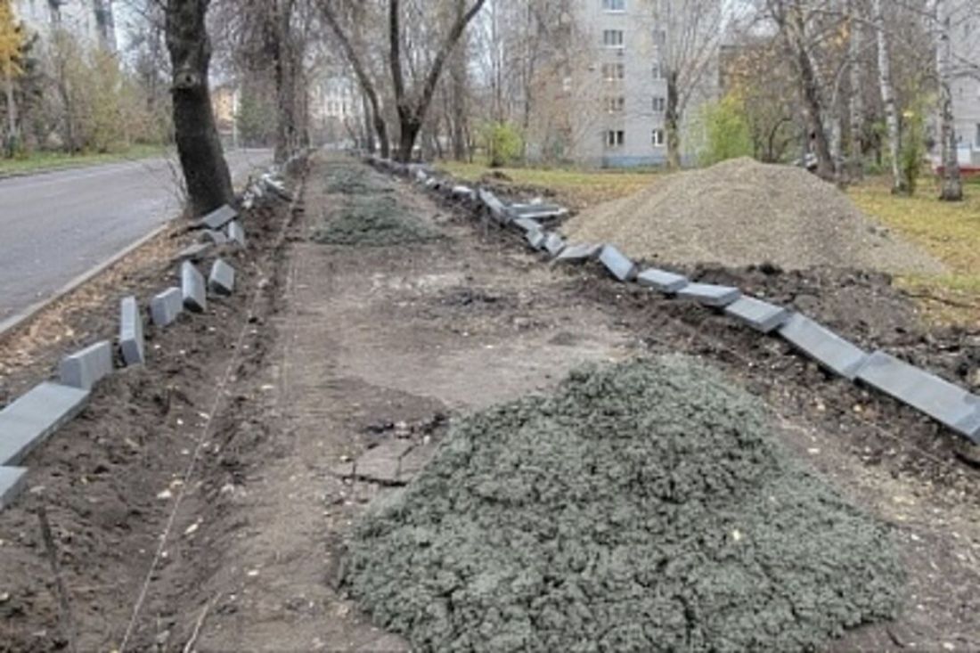 В Пензе на улице Толстого в рамках программы выполнения наказов избирателей ремонтируют тротуар.