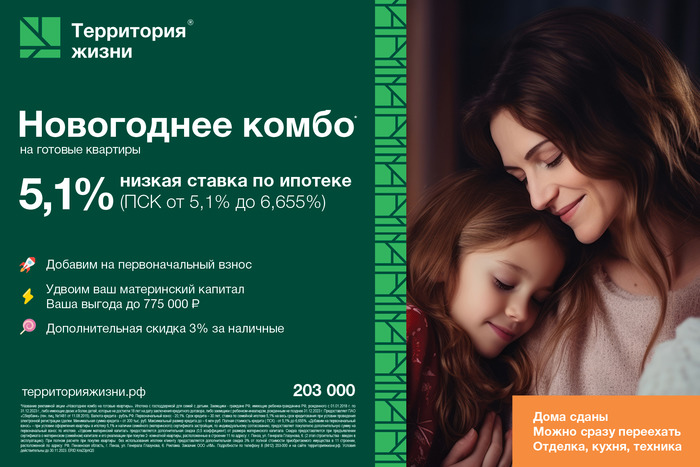 Подробности о программе и условия других акций вы можете узнать на сайте территорияжизни.рф или в офисах, которые работают для вашего комфорта без выходных и перерывов. Также можете оставить заявку ЗДЕСЬ.