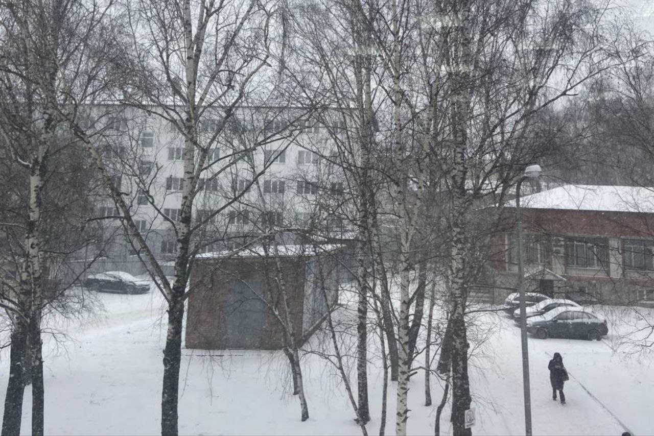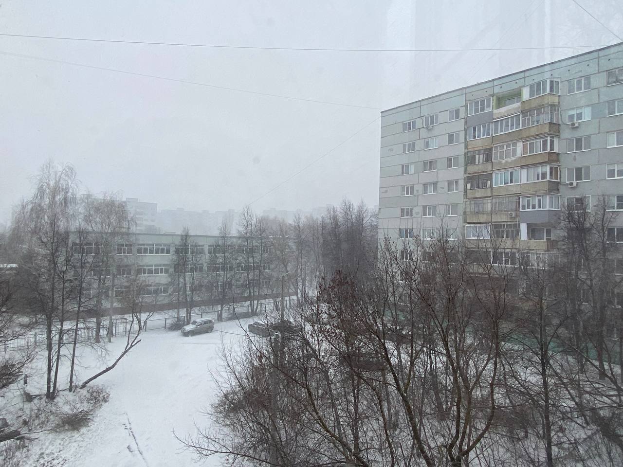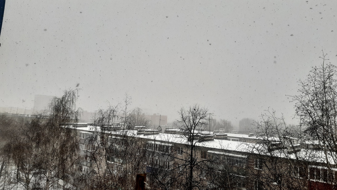 Сильный снегопад, ухудшающий видимость, накрыло микрорайон Окружной. Из-за осадков многоэтажки скрылись в легкой дымке.