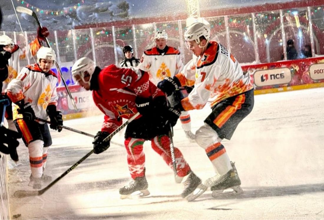 В Москве на Красной площади состоялся хоккейный матч между командами МЧС России и МЧС Республики Беларусь.