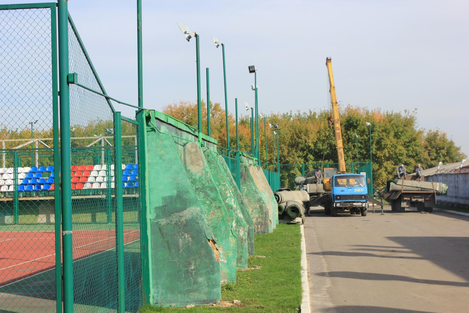 Как сообщила в ходе выездного совещания начальник городского управления капитального строительства Светлана Круглова, процесс идет согласно графику, причем сразу в нескольких направлениях: ведется демонтаж искусственного покрытия футбольного поля, вывозится железобетон, препятствующий дальнейшему выполнению работ, произведен демонтаж здания, которое когда-то должно было стать бассейном – на его месте будут размещены раздевалки для команд, а также административный блок с конференц-залом, душевыми и туалетами.