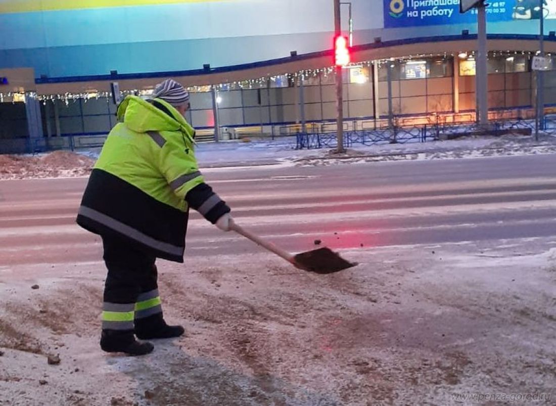 В новогоднюю ночь в Пензе тротуары посыпали пескосоляной смесью
