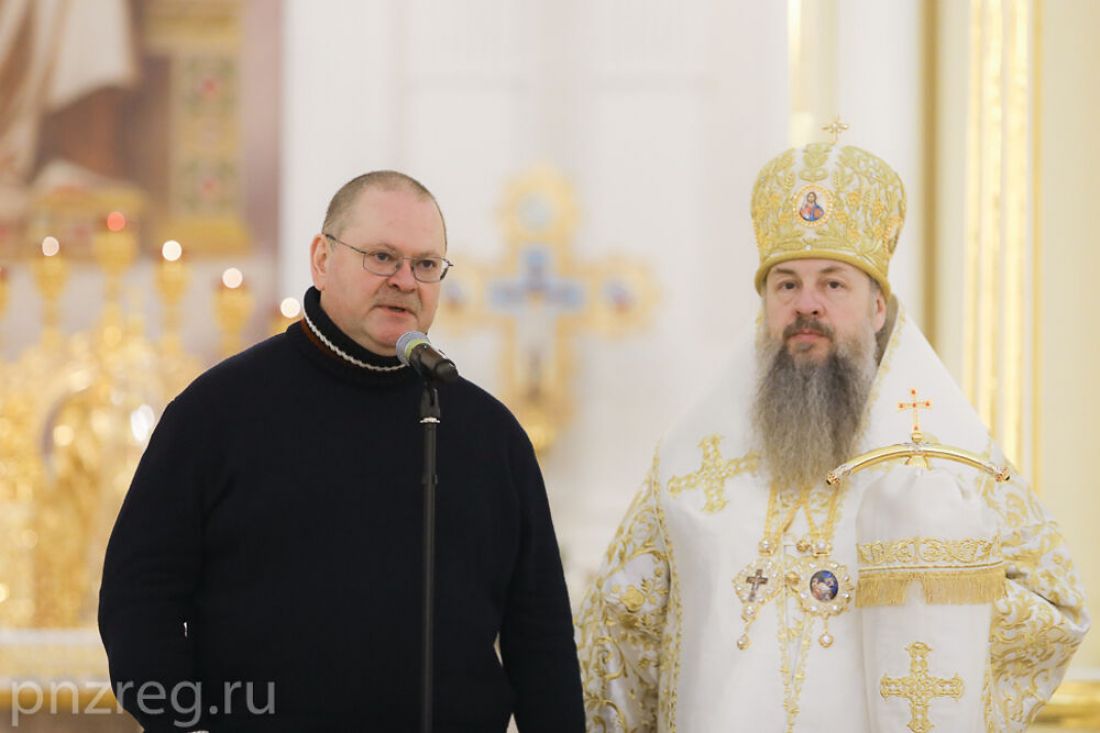 Губернатор Пензенской области Олег Мельниченко поздравил граждан с Рождеством Христовым по окончании торжественного богослужения, которое провел Митрополит Пензенский и Нижнеломовский Серафим.