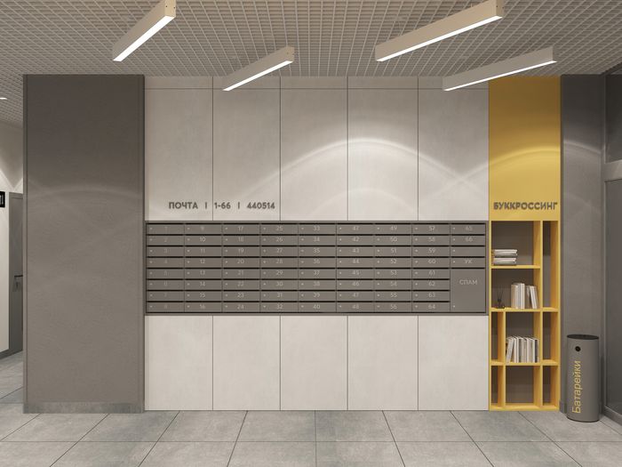 Здесь все, что так полюбилось покупателям в проекте. Функциональные холлы с общим санузлом, колясочными и лапомойками, комната для хранения уличных игрушек и даже стеллажи для буккроссинга.