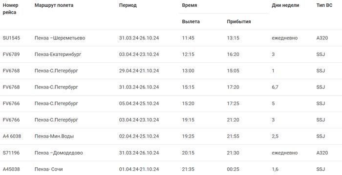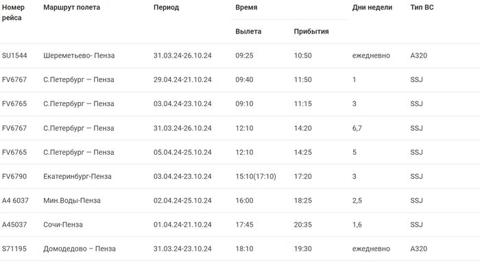 На сайте аэропорта имени В.Г. Белинского появилось планируемое расписание авиарейсов, которые будут прибывать в Пензу и отправляться из нее в течение ближайшего лета.