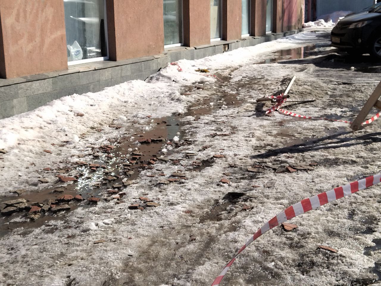 На кадрах четко видно, что асфальт усыпан кусками отделочных материалов. Рядом лежит сигнальная лента, которая по-видимому слетела из-за порывов ветра. Гражданам стоит быть внимательнее, чтобы не попасть в опасную ситуацию.