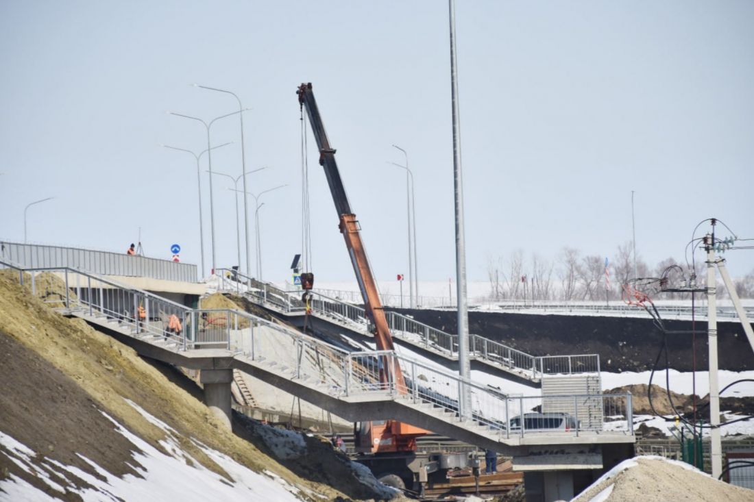 Строительство ведется в рамках нацпроекта «Безопасные качественные дороги», инициированного президентом России. В проект входит возведение развязки и надземного перехода, оборудованного наклонными подъемниками. Сейчас ведутся работы по креплению поликарбонатного покрытия перехода, а затем начнется устройство электроосвещения, прохожей части, окраска стыков блоков пролетного строения и лестничных сходов.