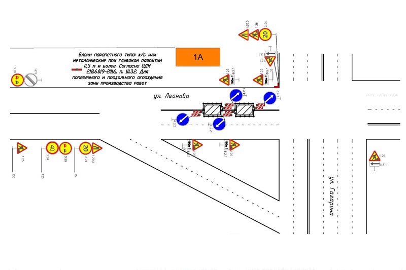 Недоступна для движения будет центральная полоса дороги около дома №1А на улице Леонова. При этом отмечается, что полосы слева и справа будут свободны для проезда.