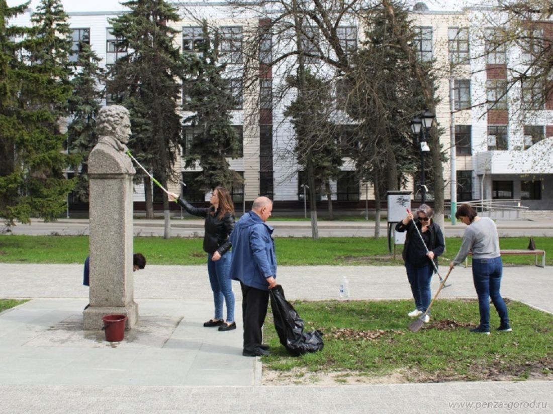 Сотрудники парка им. В.Г. Белинского помыли памятник Карлу Марксу, очистили от мусора территорию у мемориального комплекса «Оборонительный вал». Представители Центра культуры и досуга благоустроили памятник «Часовые памяти» в сквере «Журавли», коллектив Пензенского театра юного зрителя очистил стелу «Маяк революции».
