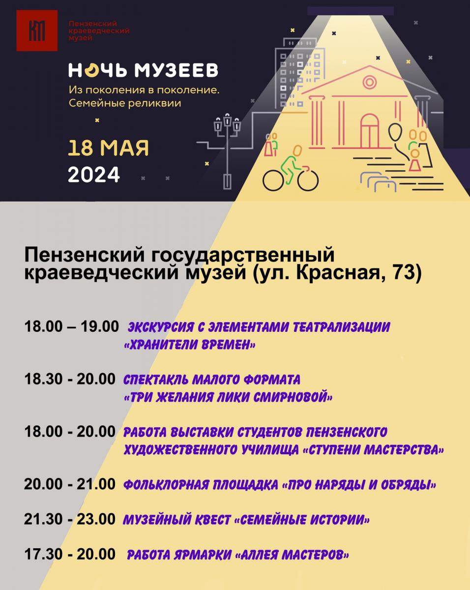 18 мая Пензенская область присоединится к ежегодной акции «Ночь музеев». В этом году она посвящена теме «Из поколения в поколение. Семейные реликвии».
