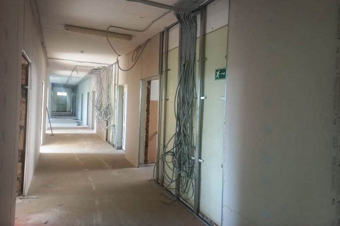Сейчас на объекте завершены демонтажные работы, проведены заливка стяжки пола на трех этажах, монтаж системы электроснабжения второго этажа, а также начаты работы по отделке стен на втором этаже. По словам главврача Юли Тивиковой, выполнение работ составляет 35% от объема 2024 года.