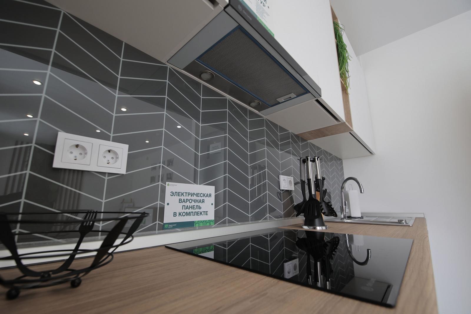 • Кухонный гарнитур со встраиваемой техникой: варочная панель, духовой шкаф, вытяжка;