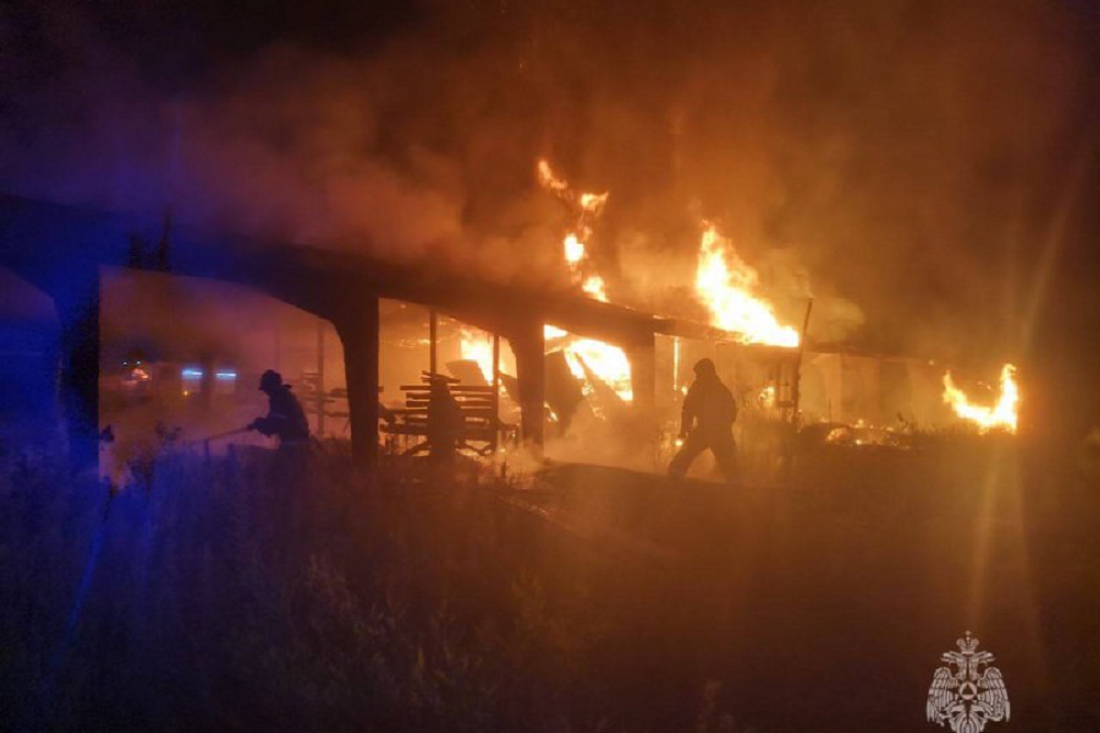В воскресенье ночью на территории села Бессоновка произошел пожар в здании пилорамы.