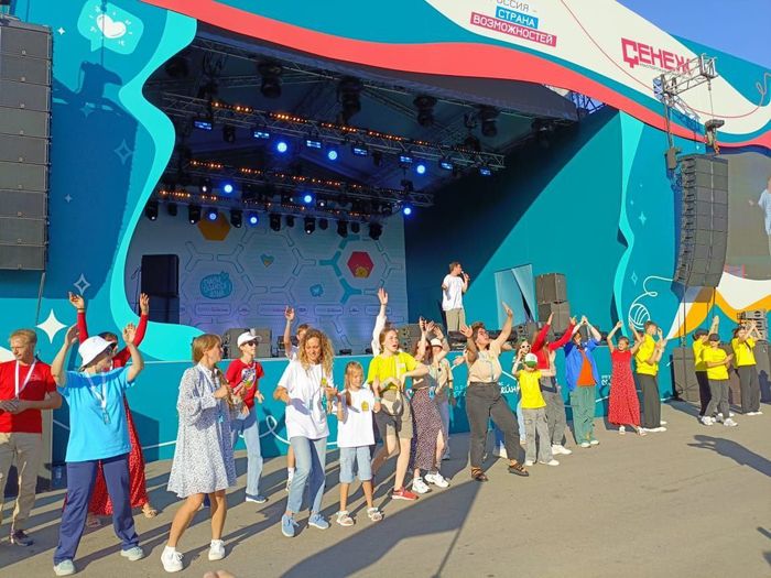 Для семей выступали творческие коллективы и резиденты арт-кластера «Таврида». Всех участников пригласили выстроить огромный хоровод, который объединил не только поколения каждой семьи, но и все регионы большой России.