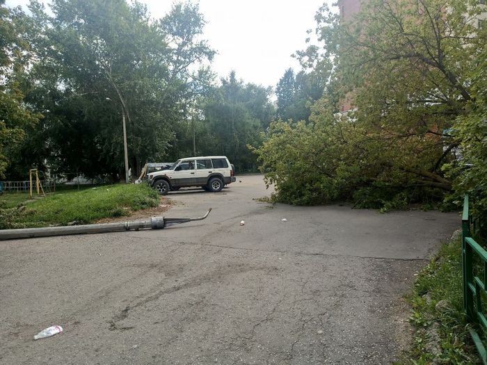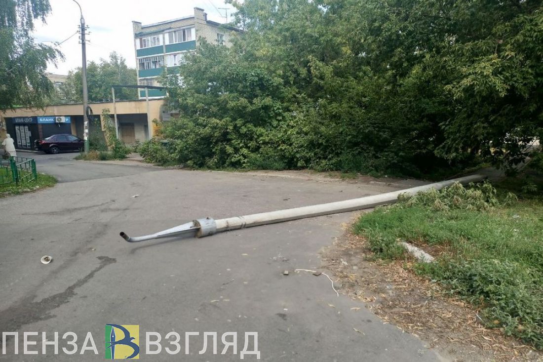Неприятное происшествие случилось во дворе дома №3 по улице Кулакова в Пензе. Местные жители увидели лежащий на дороге бетонный столб и большое упавшее дерево.