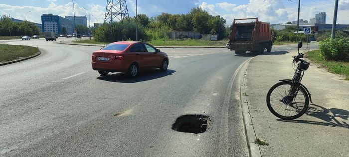 В социальной сети «ВКонтакте» он опубликовал фотографии, где видно, что на проезжей части у одного из дождеприемников отсутствует защитная решетка. В результате, образовалась солидных размеров яма, в которую может угодить машина.