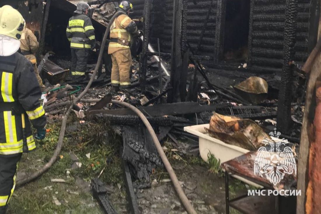 Примерно в 12:40 загорелся срубовый дом на улице Центральной. Внутри находились четыре человека, в том числе двое детей. Пламя охватило веранду, а затем распространилось на все строение площадью 120 квадратных метров.