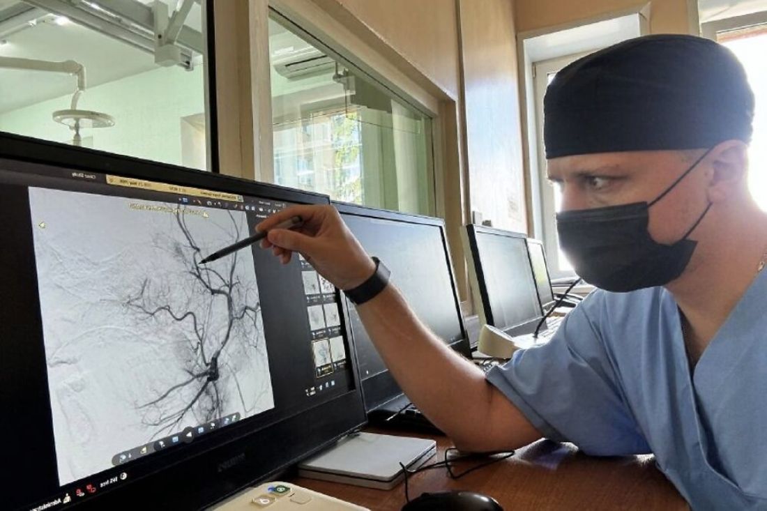 «Мы приняли решение ангиографически выявить источник кровотечения и суперселективно его заэмболизировать, то есть остановить кровоток в пораженном сосуде изнутри при помощи микроэмболов», — рассказал заведующий отделением рентгенохирургических методов диагностики и лечения медучреждения Алексей Соколов.