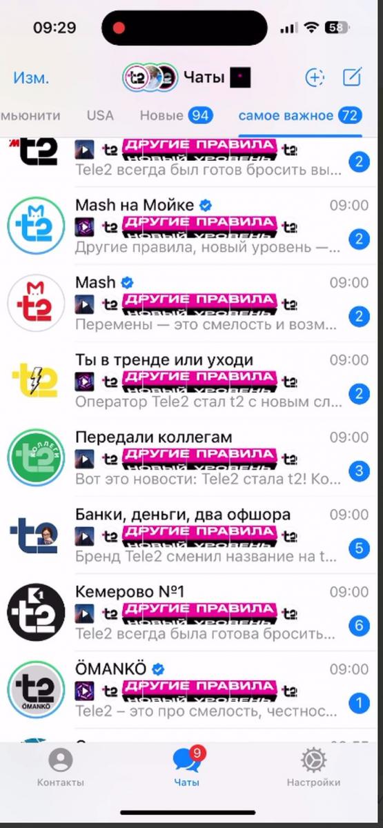 T2 запустил флешмоб аватарок в Telegram по случаю своего ребрендинга. 4 сентября компания единовременно разместила кобрендированные аватарки в 82 ведущих Telegram-каналах с новым логотипом.