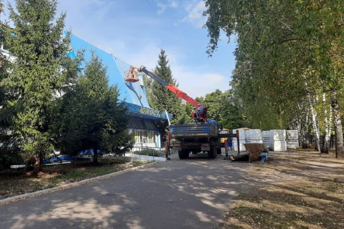 На сегодняшний день подрядная организация провела работы по устройству новой отмостки вокруг здания, укладке бордюрного камня на входных площадках и отмостке, ремонту кирпичного цоколя. Сейчас ведется работа по замене кровельных панелей. Завершить ремонт подрядная организация планирует до 31 октября текущего года.