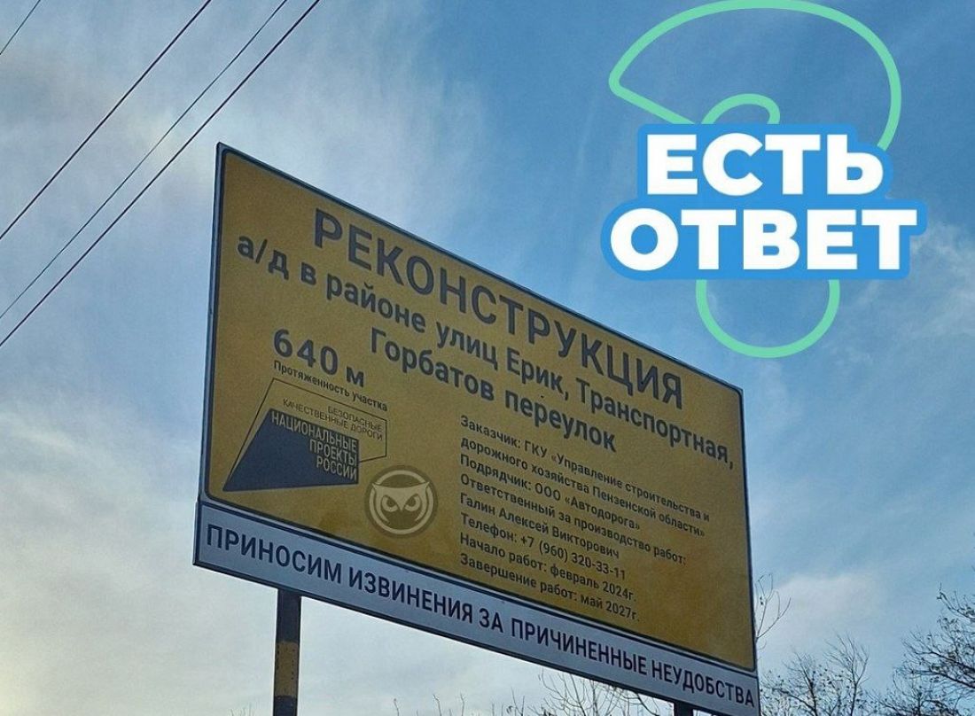 Представители Министерства строительства и дорожного хозяйства Пензенской области сообщили, что с февраля текущего года велась разработка рабочей документации в рамках проведения работ на объекте «Автомобильная дорога в районе ул. Ерика, Транспортная, Горбатова пер., г. Пенза».