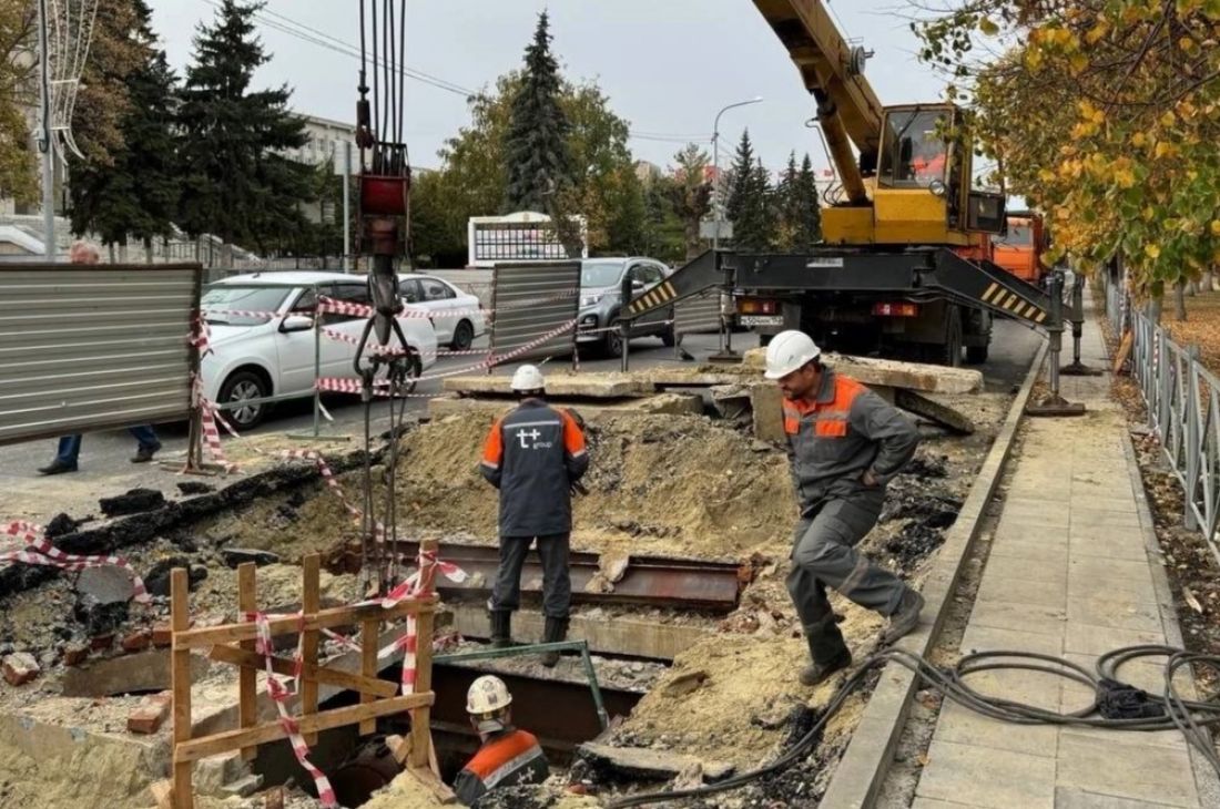 Продолжаются работы на пересечении улиц Пушкина и Володарского после произошедшей коммунальной аварии.