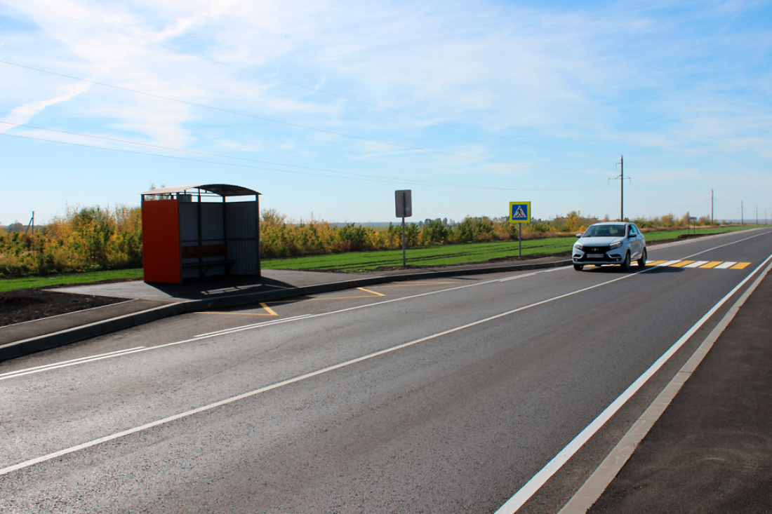 Подрядная организация укрепила основание дороги, уложила 2 слоя асфальтобетонного покрытия, обустроила остановку и сделала обочины из щебня, отремонтировала водопропускные трубы и нанесла дорожную разметку.