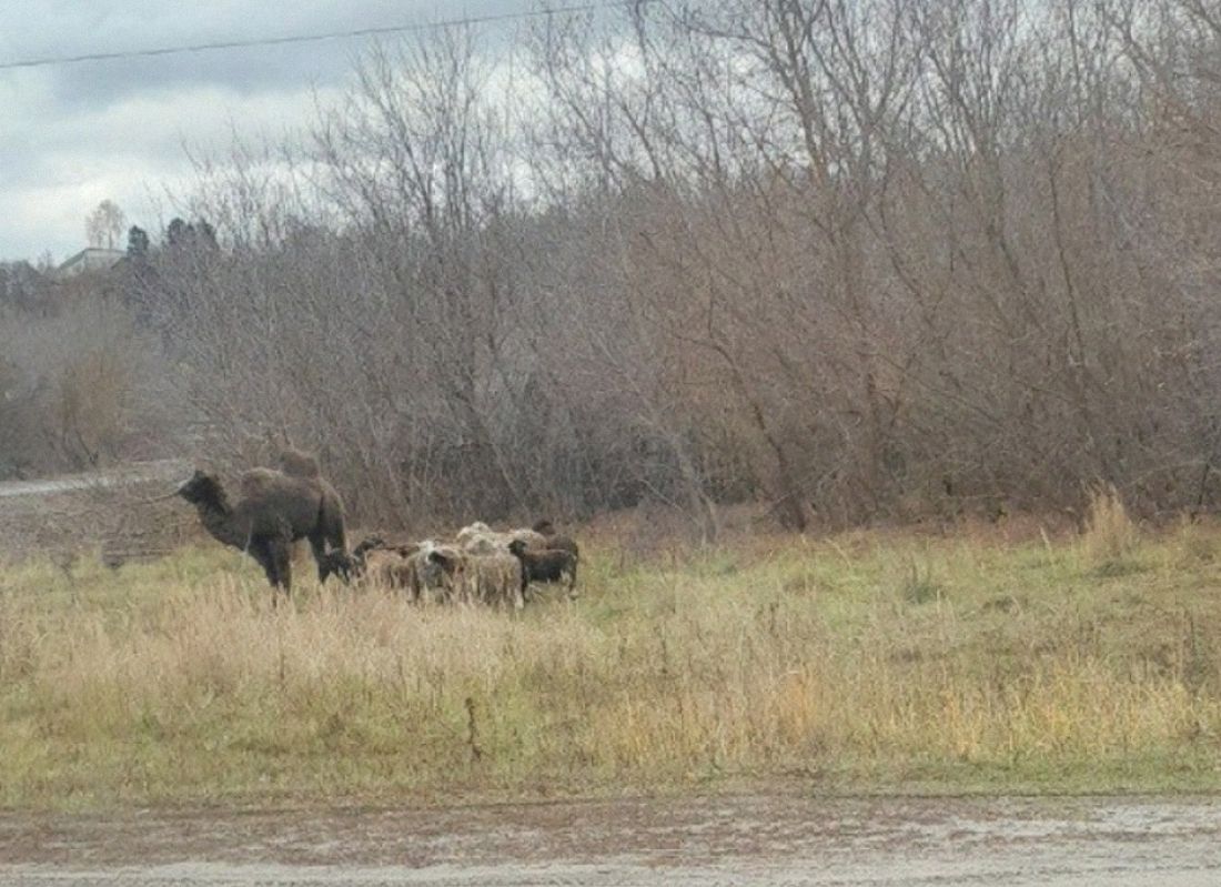 В группе «Подслушано Городищенский район» в социальной сети «ВКонтакте» размещена фотография, на котором запечатлено стадо овец, вместе с которыми пасется верблюд.