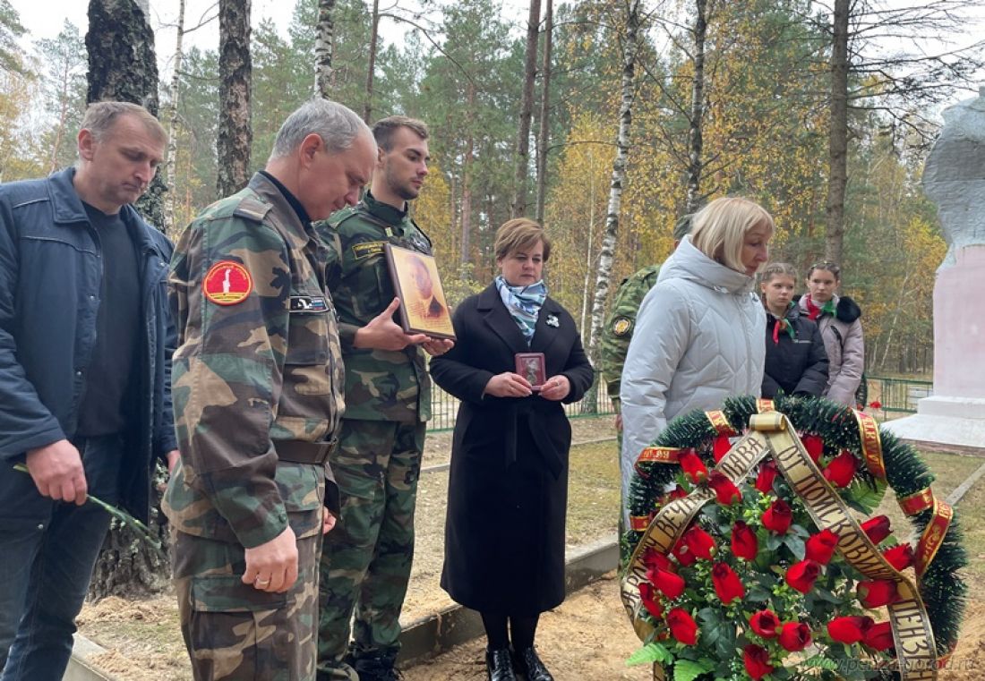 Церемония захоронения останков красноармейца Сергея Благова прошла на мемориале в деревне Близнецы, где собрались местные жители, ветераны и представители власти.