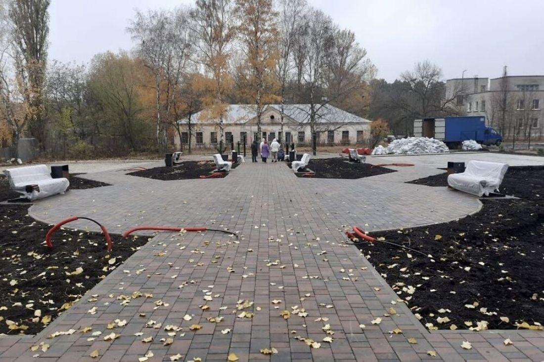 Объект расположен на улице Чайковского, в районе бывшей машзаводской больницы. Сейчас подрядчик уже завершил укладку тротуарной плитки, бордюрного камня, установил скамейки и урны для сбора мусора, а также провел высадку саженцев ели.