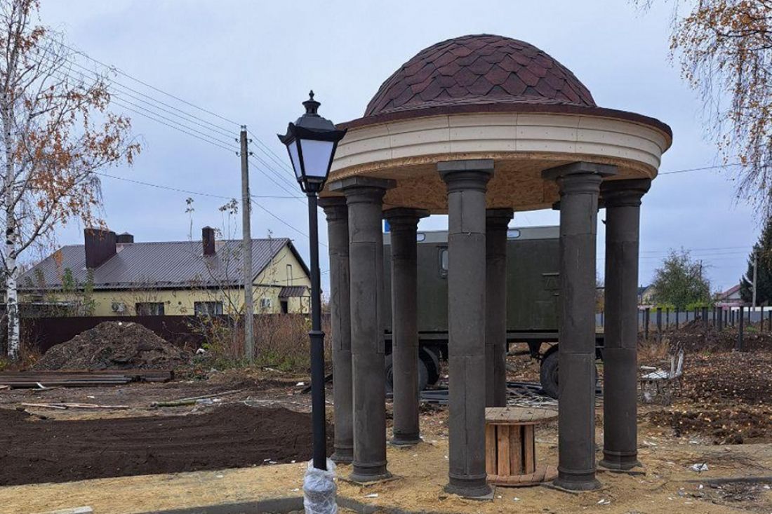 Он пояснил, что специалисты подрядной организации установили беседку из бетонных колонн и осветительные опоры, а также уложили тротуарную плитку.