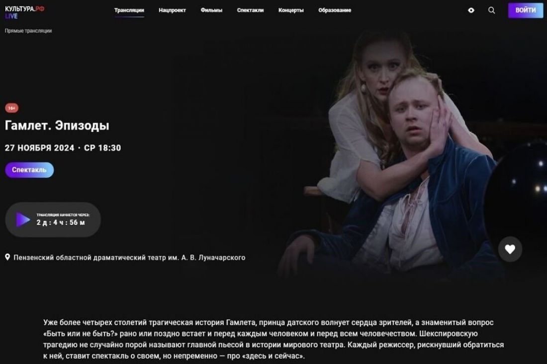 Спектакли Пензенского драмтеатра будут показывать на портале «Культура.РФ»