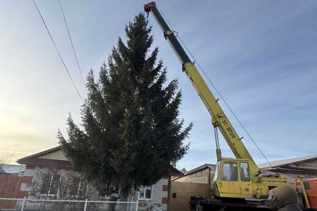 На площади в Кузнецке установили 11-метровую новогоднюю елку