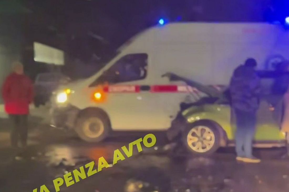 Скорая приехала на место ночной аварии с двумя автомобилями в Пензе