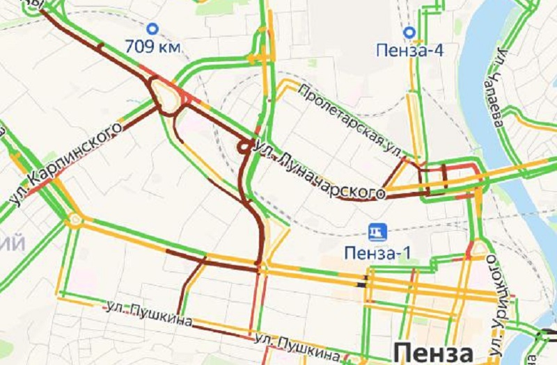 Автолюбителям придется постоять в пробках на Толстовском путепроводе, а также на участке улицы Суворова от филармонии до второго корпуса Лицея №2 по направлению в центр.