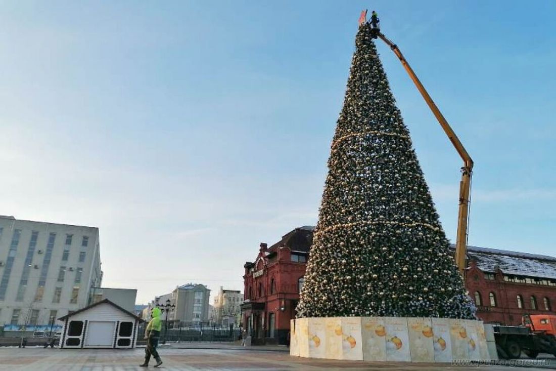 В Пензе завершается оформление главной новогодней елки