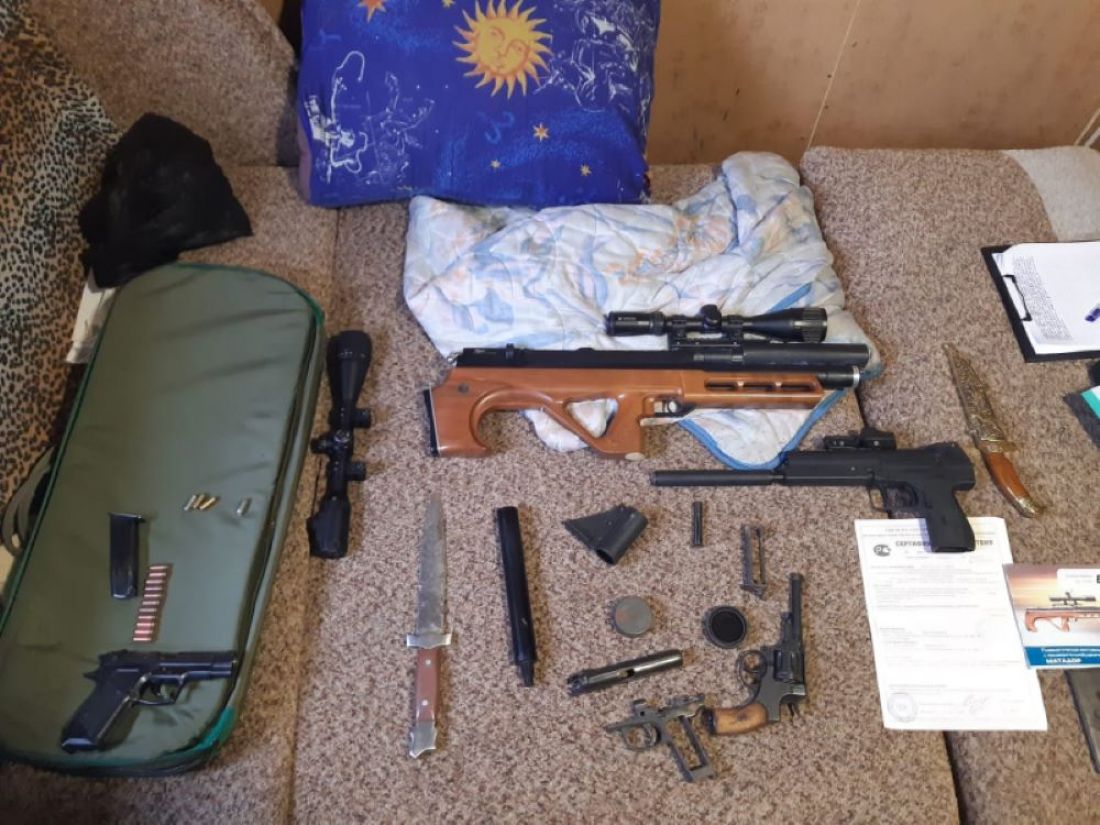 Эксперты установили, что среди изъятых предметов находятся переделанные сигнальные револьвер и пистолет, а также травматический пистолет, детали оружия и патроны. Также была обнаружена пневматическая винтовка и самодельные патроны.
