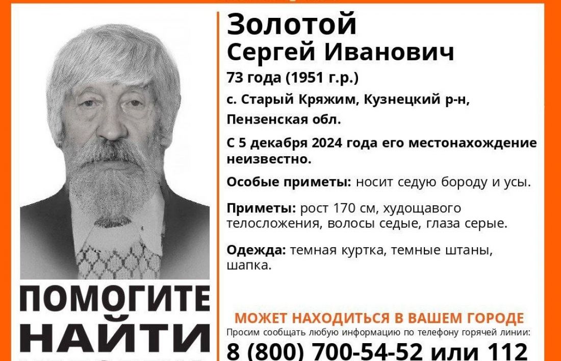 В Кузнецком районе ищут 73-летнего Сергея Золотого