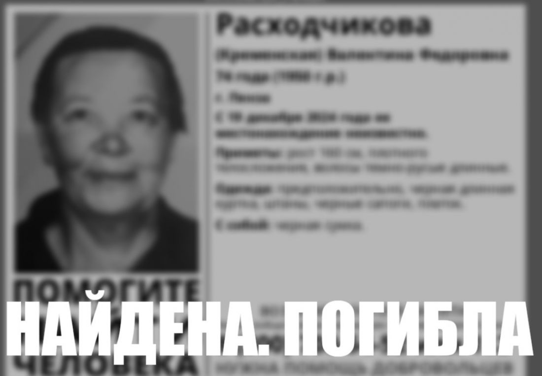 В группе поискового отряда «Лиза Алерт» Пензенской области на ориентировке на 74-летнюю жительницу Пензы появилась надпись «Найдена. Погибла».